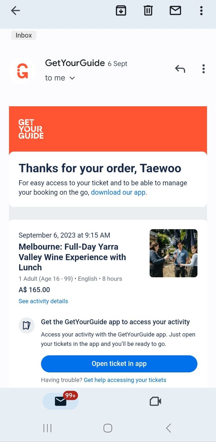 호주에서 와이너리 투어가 좋다고 한 분들이 너무 많아서 언젠가 한번 가야지 했는데, 이번에 쉴 기회가 생겨서 9월 6일 수요일에 데이 투어 다녀왔습니다. 갑자기 쉬게 된 거라 전날 새벽에 예약했는데 출발 8시간 전이었음에도 예약할 수 있는 투어가 많더라구요.